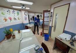 지저분한 바닥, 칠판, 화장실, 냉 온풍기 필터까지 화이트환경만의 정기 청소로 아이들과 선생님의 건강을 뒷받침해 드리겠습니다.